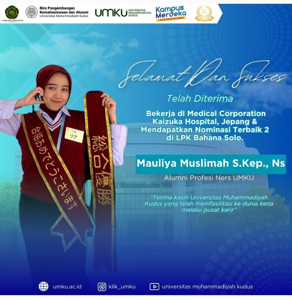 Saya ingin mengucapkan rasa terima kasih yang sebesar-besarnya kepada Universitas Muhammadiyah Kudus khususnya kepada Pusat Karir UMKU yang telah memberikan jalan untuk berkarir di jepang dan terima kasih kepada para dosen dan staf yang telah membimbing saya selama masa perkuliahan. sehingga saya dapat mengamalkan ilmu atau bekerja di jepang ini. Alhamdulillah dengan bimbingan pusat karir […]