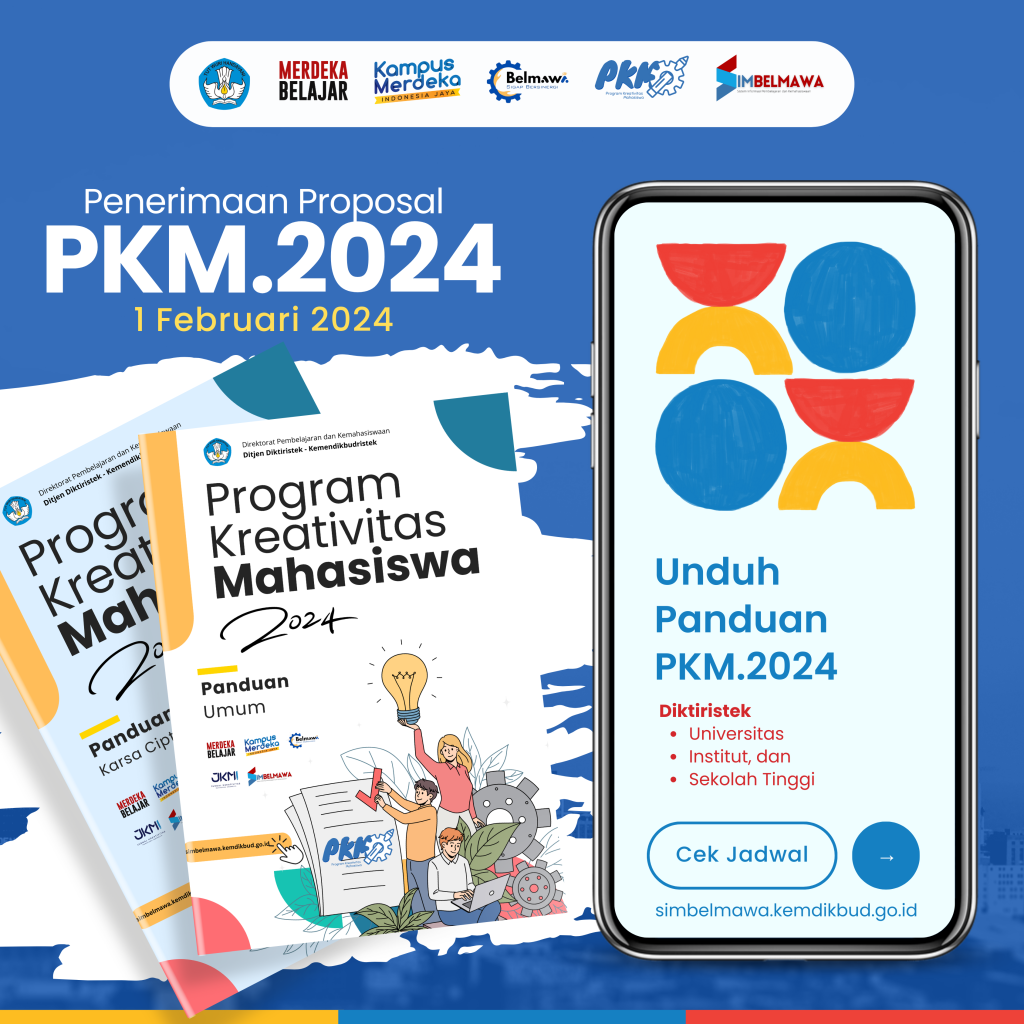 Yth. Dekan Ketua Program Studi Mahasiswa Sebagai upaya memandu mahasiswa menjadi pribadi yang tahu dan taat aturan; kreatif dan inovatif; objektif kooperatif dalam membangun keragaman intelektual, Direktorat Pembelajaran dan Kemahasiswaan (Belmawa) menyelenggarakan Program Kreativitas Mahasiswa (PKM) tahun 2024. Sehubungan dengan hal tersebut, kami memberi kesempatan kepada mahasiswa di lingkungan Saudara untuk berpartisipasi dalam PKM tahun 2024 dengan ketentuan sebagaimana (terlampir). Demikian kami sampaikan, atas perhatian dan kerja sama yang baik, kami mengucapkan terima kasih. TTD Rizka Himawan, M.Psi 1. Panduan Umum PKM 2024Unduh 2. Panduan PKM-RE 2024Unduh […]